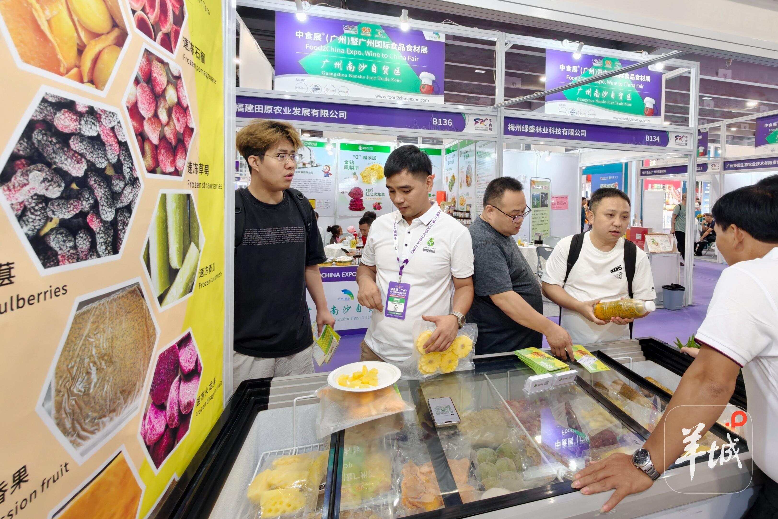 来自梅州平远、湛江雷州、徐闻及龙岩漳平等对口帮扶地区的特色产品也在南沙展区一同展出。雷州菠萝、平远铁皮石斛、漳平水仙茶等地方特产吸引了不少采购商咨询。广东明俊食品有限公司负责人告诉记者,他们从徐闻带来多种速冻热带水果产品,已与部分餐饮企业达成初步合作意向,“这次参展不仅提升了产品在珠三角的知名度,还吸引了国外客商的注意”。