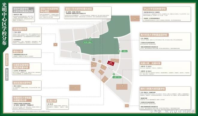 项目自带18班幼儿园,周边300米范围内规划72班九年一贯制学校(2025年招生),3公里内覆盖深圳实验光明学校、深圳外国语学校光明学校等名校,形成从幼儿园到高中的全链条优质教育体系。光明中学2024年高考本科率突破 97%,特控线%,教育质量稳居全市公办高中第二梯队前列。