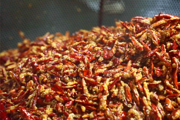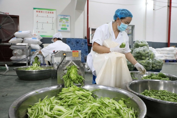 这样的“美味密码”,同样藏在香酥辣椒和香酥折耳根等产品里。从原料挑选、切条、清洗、漂烫、低温油炸、快速降温和灌装,各环节被精准控制,确保产品生产环节规范、质量保证。