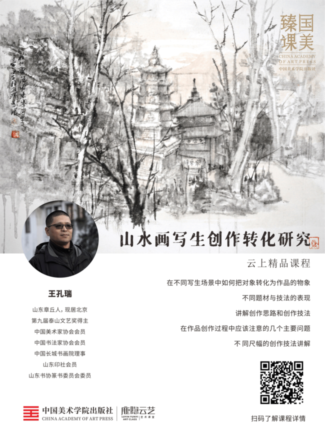 《山水画写生创作转化研究》也是中国美术学院出版社“国美臻课”教材孵化项目重要成果之一。近年来。中国美术学院出版社立足于新时期社会美育的实践与传播,依托中国美术学院独有、深厚的专业教学和学术科研背景,以及相关艺术家、学者教授的优势资源,以传承和弘扬中华优秀传统文化为出发点,通过一系列高质量的教学互动和鲜活的美育实践,编撰、淬炼优秀美术教材,梳理艺术教育出版的新理念、新形式和新方法,实现传统绘画艺术的传承与传播,学院教学体系向社会美育课程建设的创造性转化和创新性发展。