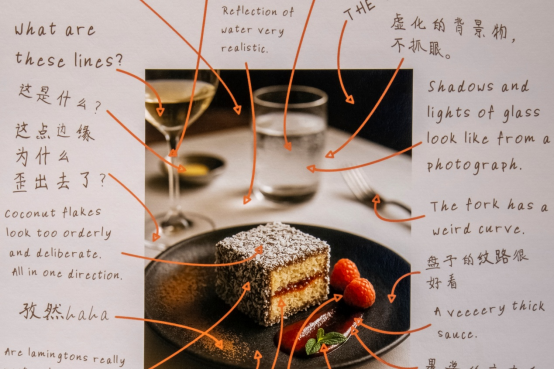 《眨眼间》通过 AI生成了世界上不同国家特色美食的图片,让10岁左右的儿童对图片的细节进行评论,观众通过图像与图像上的评论文字可以了解,在数字化时代中孩子们对AI物化的世界的新的认知方式。