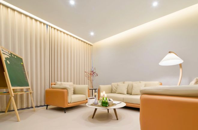壹点灵的咨询环境也是值得大书特书。壹点灵心理咨询室的空间面积一般为8-12㎡,通过屏风灵活分区,适配个体、伴侣、家庭等多元场景;标配实木地板、三色可调灯光及低饱和度色调(米色、湖蓝等),搭配布艺沙发与原木家具,平衡功能性与温馨感。