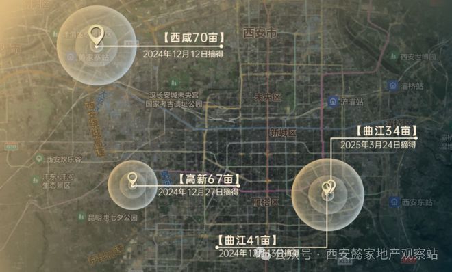 2024年12月至今,邦泰集团以雷霆之势连落四子,耗资超35亿重仓西安,完成能源金贸区、高新软件新城、曲江文教园三大核心版块的战略拼图,奠定深耕西安的黄金支点。