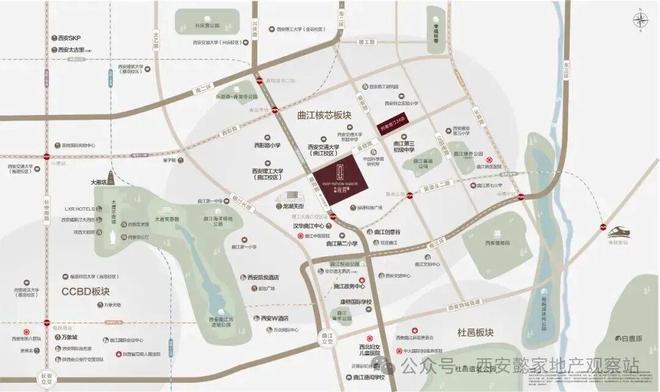 观宸曲江择址于曲江文教园核心腹地,板块目前仅余最后1.2平方公里可开发住宅用地,以「三非准则」(非刚需产品/非普通客群/非复制地段)严选藏品级宅邸,聚集众多高品质改善住宅,形成西安罕见的低密住区+全龄名校+高净值邻里黄金三角。