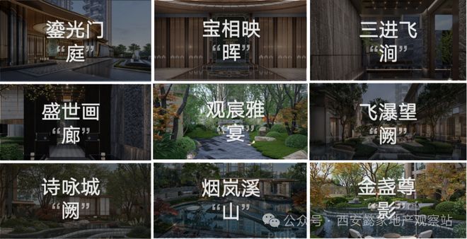 建筑规划溯源盛唐宫阙营造法式,整体布局恪守绝对对称的古典美学原则,创新演绎三横三纵空间格局。横向三轴线依殿-庭-苑空间序列层层递进,构建起登堂-入庭-游园的三进制归家之礼。纵向三重轴线则巧妙呼应当今西安三轴线城市规划布局,实现传统空间规制与现代城市肌理的时空对话。
